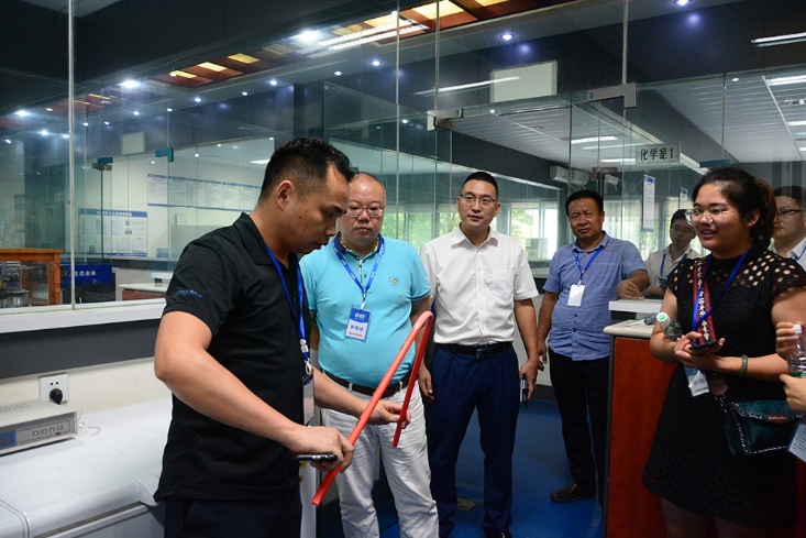 座談前,零售家裝事業(yè)部總經(jīng)理兼不銹鋼事業(yè)部副總經(jīng)理趙謙,不銹鋼事業(yè)部生廠部長蔣斌,零售家裝事業(yè)部經(jīng)理李軍陪同四川省室內(nèi)裝飾協(xié)會領(lǐng)導(dǎo)到廠區(qū)進(jìn)行了參觀。在公司領(lǐng)導(dǎo)陪同下,四川省室內(nèi)裝飾協(xié)會領(lǐng)導(dǎo)先后參觀了線管車間、管件車間、管件庫房和聚烯烴車間、質(zhì)量中心實(shí)驗(yàn)室。在質(zhì)量中心實(shí)驗(yàn)員的操作下,還現(xiàn)場演示了康泰紅藍(lán)線管彎折試驗(yàn)。康泰紅藍(lán)線管優(yōu)良的質(zhì)量和抗壓性贏得了參觀嘉賓的一致好評。