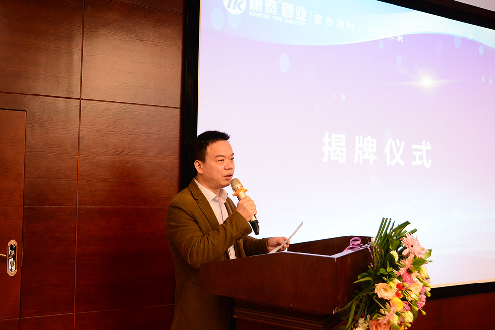 崇州市經(jīng)濟開發(fā)區(qū)管委會副主任王能也對“中心”和“基地”的成立表示了祝賀,并表示,“塑膠管道工程技術中心”暨“塑膠管道聯(lián)合科研基地”落戶康泰集團,顯示了康泰在行業(yè)的引領作用,也祝愿康泰集團在今后的發(fā)展中再上新臺階。作為管委會,我們會一如既往的支持康泰,以及園區(qū)企業(yè)的發(fā)展。