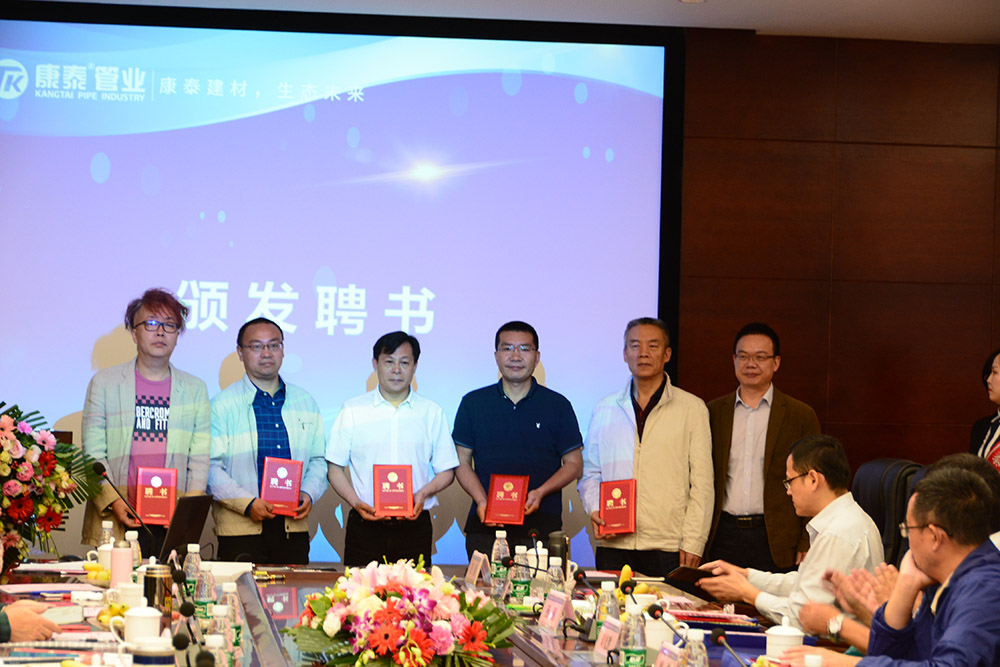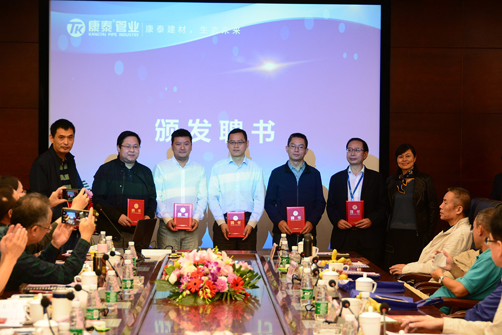 在熱烈而友好的氣氛中,各位領導分別為《“塑膠管道工程技術中心”、“塑膠管道聯(lián)合科研基地”》名譽主任委員、主任委員、副主任委員、資深專家頒發(fā)了聘書。
