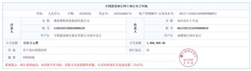2008年5月12日,汶川特大地震災(zāi)害發(fā)生后,康泰積極捐款捐物,先后向汶川第一中學(xué)、都江堰一中、雁門小學(xué)、雁門安置房、映秀大壩水站、綿竹市板房區(qū)以及什邡市新農(nóng)村建設(shè)等地震災(zāi)區(qū)捐款、捐物達(dá)300余萬元。2020年1月,一場(chǎng)突如其來的新型冠狀病毒肺炎疫情肆虐中華大地??堤┞氏软憫?yīng)社會(huì)號(hào)召,第一時(shí)間向崇州市紅十字會(huì)捐款100萬元,專門用于疫情防控工作,彰顯了大愛無疆的新時(shí)代企業(yè)精神。