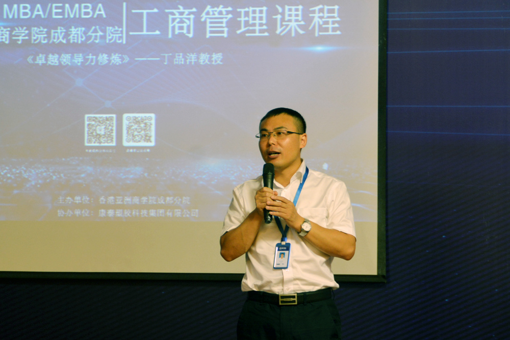 7月19日,康泰塑膠科技集團(tuán)有限公司聯(lián)合香港亞洲商學(xué)院MBA成都分院在康泰集團(tuán)總部五樓多功能廳舉行了為期一天的《卓越領(lǐng)導(dǎo)力修煉》專(zhuān)題培訓(xùn)會(huì)議。集團(tuán)董事長(zhǎng)兼總裁林云青、副總裁鄭光鏵、張文霖,以及集團(tuán)、成都子公司中高層團(tuán)隊(duì),亞商學(xué)院MBA學(xué)員等共計(jì)100人參加了培訓(xùn)。香港亞洲商學(xué)院(簡(jiǎn)稱(chēng)亞商學(xué)院)教授丁品洋授課。