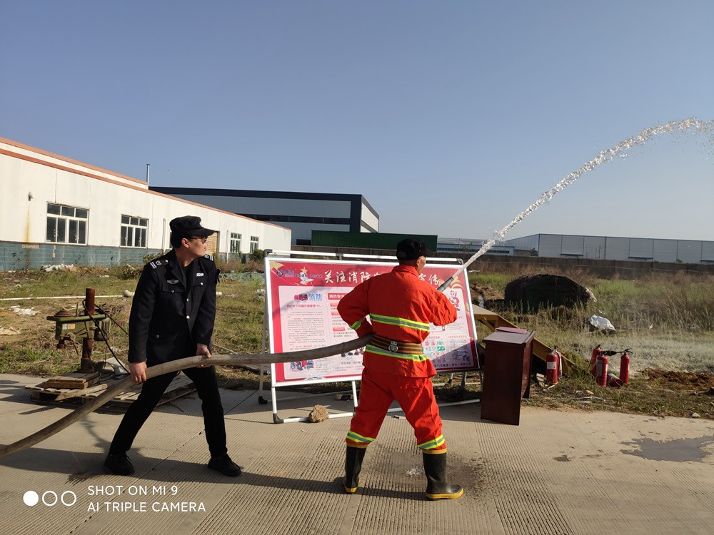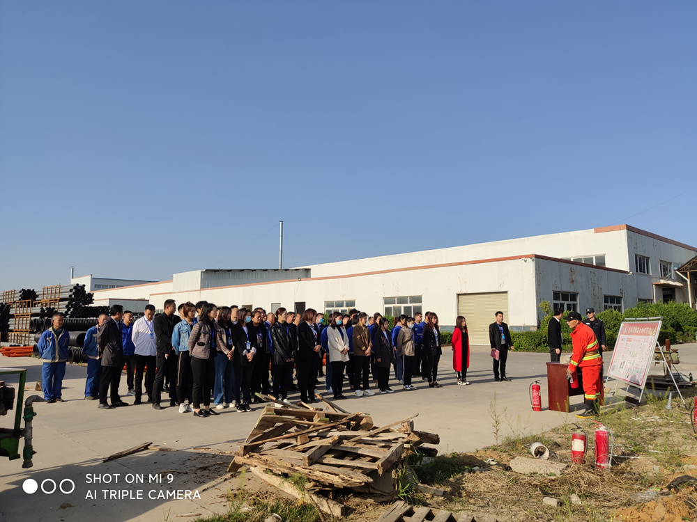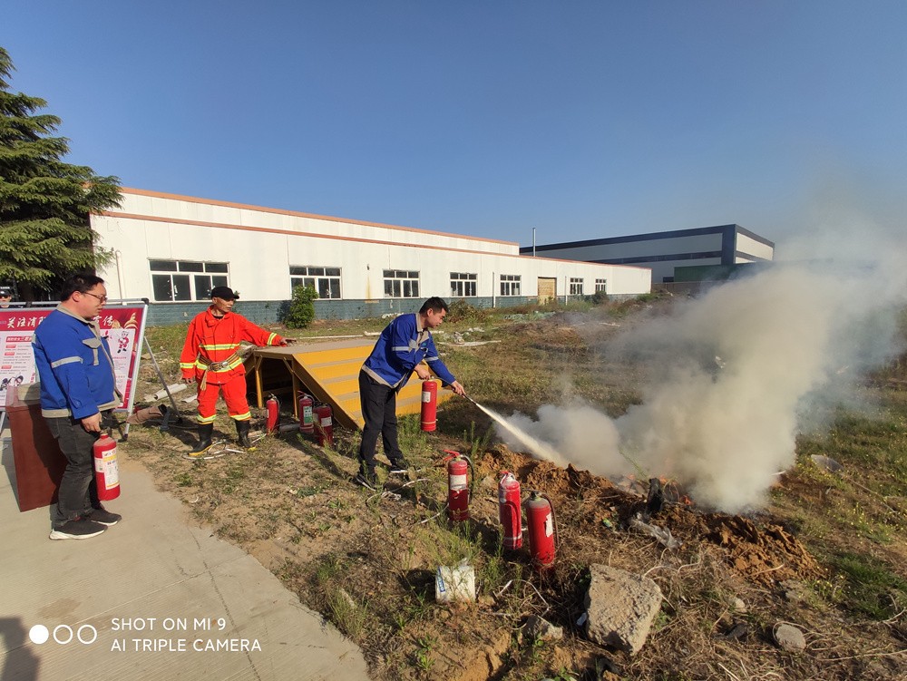 在演習(xí)活動前,首先向公司班組長以上員工講解了消防器材、維護(hù)以及使用的方法。演習(xí)模擬庫房空地起火冒出一股濃煙?!盎馂?zāi)啟動緊急信號!火災(zāi)啟動緊急信號!現(xiàn)在設(shè)備區(qū)發(fā)生火災(zāi),請大家不要驚慌,不要擁擠,聽從疏散人員指揮,迅速從安全出口疏散?!彪S著一聲叫喊,值班人員(扮演)迅速啟動公司消防應(yīng)急預(yù)案,撥打119火警電話,請求支援,并通知有關(guān)人員撤離疏散。成功疏散人員之后,工作人員手持滅火器進(jìn)入院內(nèi)對起火點進(jìn)行滅火,消防應(yīng)急小分隊利用消防栓水滅火,時間控制火勢蔓延。經(jīng)過一番緊張的撲救,終于明火被完全撲滅,3分鐘后,隨著濃煙漸漸散去,演習(xí)取得圓滿成功。