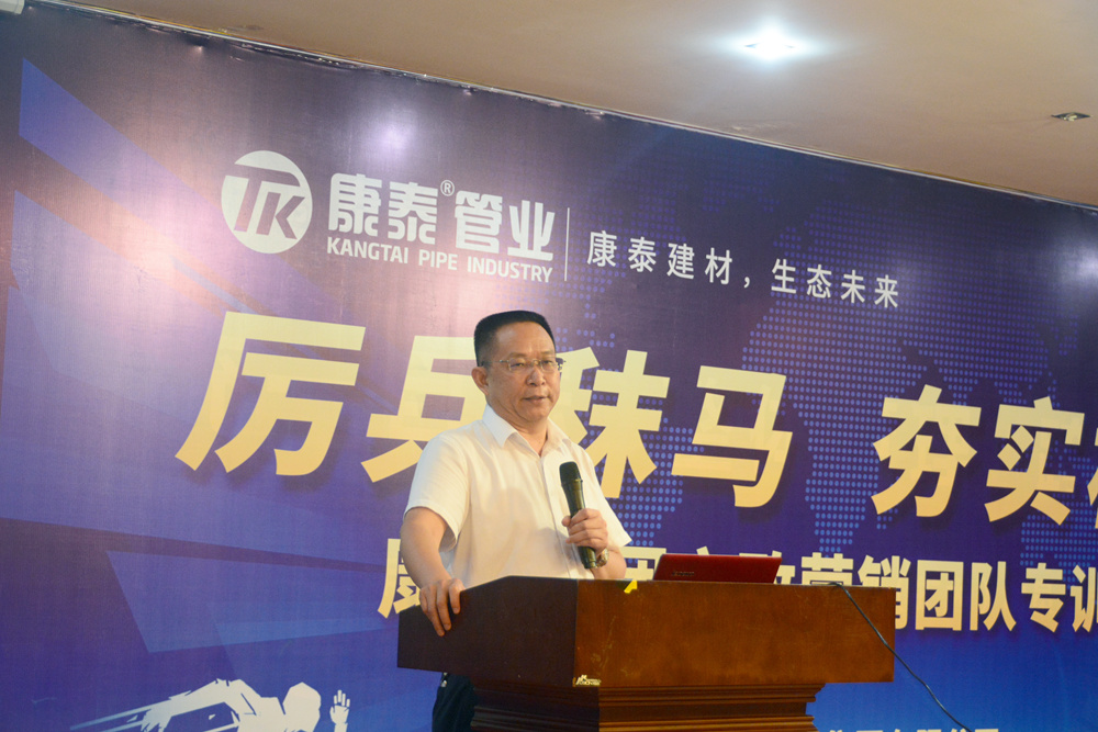 市政總監(jiān)何朝暉就此次培訓(xùn)的目的作了三點(diǎn)闡述,一是受國(guó)際國(guó)內(nèi)市場(chǎng)環(huán)境,新冠疫情影響,塑膠管道行業(yè)的改革和調(diào)整勢(shì)在必行。公司根據(jù)這些變化及時(shí)做出戰(zhàn)略和結(jié)構(gòu)上的調(diào)整是及時(shí)和正確的;二是目前中國(guó)塑料管道行業(yè)產(chǎn)能嚴(yán)重過剩,塑膠管道市場(chǎng)也正向有技術(shù)、有產(chǎn)品、有品牌知名度的企業(yè)集中。加之未來幾年國(guó)家將不斷加大在市政基礎(chǔ)設(shè)施領(lǐng)域的投入,這對(duì)康泰來說是機(jī)遇,也是突破;三是本次培訓(xùn)就是撈干貨,徹底講清楚講透徹我們的市政五大產(chǎn)品系統(tǒng),打造“差異化”產(chǎn)品,搶單殺單。希望市政銷售團(tuán)隊(duì)全體精英要認(rèn)真領(lǐng)會(huì)培訓(xùn)的目的和意義,努力提升自己,上下打通。