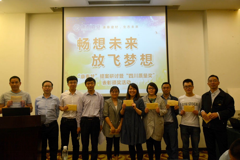 為打造品質(zhì)康泰,提高市場(chǎng)競(jìng)爭(zhēng)力和公司美譽(yù)度,追逐康泰夢(mèng)想,增強(qiáng)中高層管理團(tuán)隊(duì)凝聚力。5月6日下午,四川質(zhì)量獎(jiǎng)內(nèi)部表彰暨康泰夢(mèng)提案揭曉會(huì)議在大邑縣道源圣城國(guó)際大酒店召開(kāi)。會(huì)議由總裁辦、市場(chǎng)中心、生產(chǎn)中心、質(zhì)量中心、技術(shù)中心聯(lián)合主辦??堤┘瘓F(tuán)董事長(zhǎng)兼總裁林云青,副總裁鄭光鏵、張文霖以及母公司中層以上管理人員,各中心參與四川省質(zhì)量獎(jiǎng)申報(bào)人員,康泰夢(mèng)獲獎(jiǎng)提案和入圍提案人員等參加了此次會(huì)議。