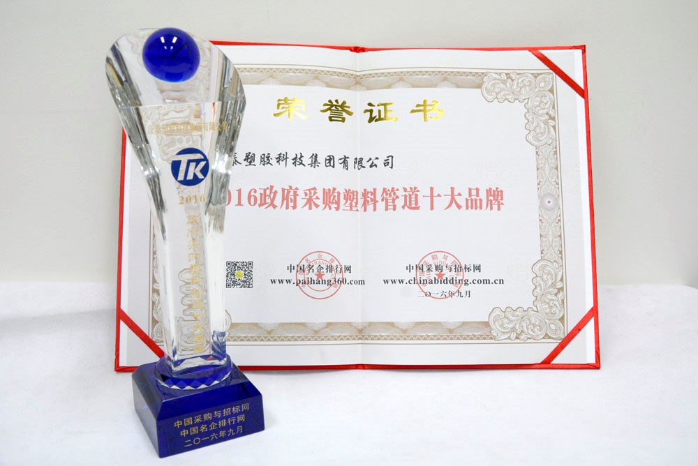 康泰榮獲“2016政府采購(gòu)塑料管道十大品牌”稱號(hào)