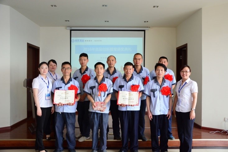 ? ? ? ?會上,林總裁和生產(chǎn)總監(jiān)洪青成對線管車間“3號、4號自動混料機創(chuàng)新和能源節(jié)約改善”、“3號、4號塑料機由人工改為自動化系統(tǒng)”兩個創(chuàng)新項目進(jìn)行了表彰。獲表彰的線管車間主任羅陽明代表獲獎單位作了發(fā)言。