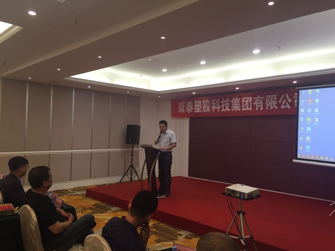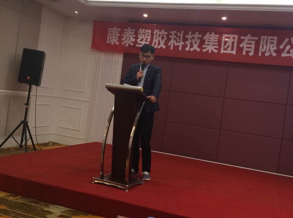 ? ? ? ?會上,康泰塑膠科技集團河南基地生產(chǎn)負責人林化平圍繞康泰的多款新產(chǎn)品的優(yōu)點和特性,從設計理念、開發(fā)背景、技術(shù)特點、產(chǎn)品原料、生產(chǎn)設備、性能對比、實驗分析、應用領域、工程案例等方面作了詳細的介紹。河南銷售分公司總經(jīng)理周建峰通過實際案例向各位來賓介紹了康泰集團的品牌價值及產(chǎn)品銷售理念??堤┊a(chǎn)品商丘總代理梁輝先生也表達了對于康泰集團的感謝以及對康泰產(chǎn)品和商丘市場的巨大信心。