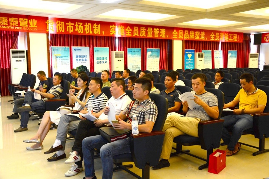 ?????? 培訓(xùn)在集團(tuán)五樓多功能室舉行,本次培訓(xùn)共包含康泰新產(chǎn)品講解、檢查井安裝知識(shí)、型材產(chǎn)品知識(shí)三部分內(nèi)容,旨在通過(guò)康泰新產(chǎn)品知識(shí)講解,讓客戶及員工了解并掌握新產(chǎn)品賣點(diǎn),提升新產(chǎn)品推廣力度。康泰集團(tuán)技術(shù)研發(fā)中心副總監(jiān)周祖明和產(chǎn)品經(jīng)理王成城,市場(chǎng)中心新產(chǎn)品推廣經(jīng)理趙謙,型材事業(yè)部蘇顯根對(duì)本次培訓(xùn)的具體內(nèi)容進(jìn)行了講解。