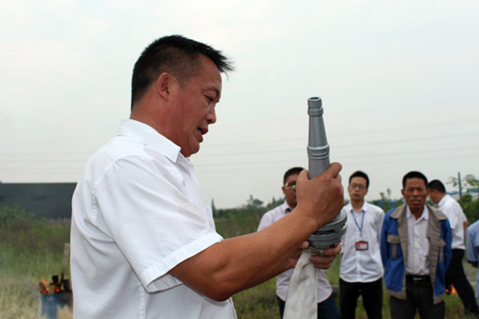 ??? 在B區(qū)空地,總裁辦后勤主管李永富向大家演示滅火器、滅火布、消防水槍、三種滅火工具的使用方法和適用范圍,并作現(xiàn)場演示。參加演練的同事,特別是來自庫房的員工積極參與到每個實戰(zhàn)環(huán)節(jié)中去,通過實踐鞏固掌握消防知識。
