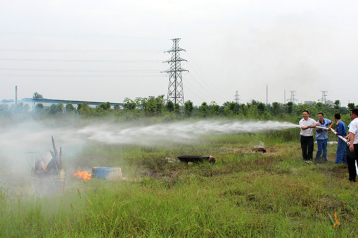 ??? 2013年9月3日,在B區(qū)空地,由安全管理辦公室組織實施的消防滅火演練順利舉行。車間主任、班組長、員工代表和庫房員工參加了此次滅火演練。