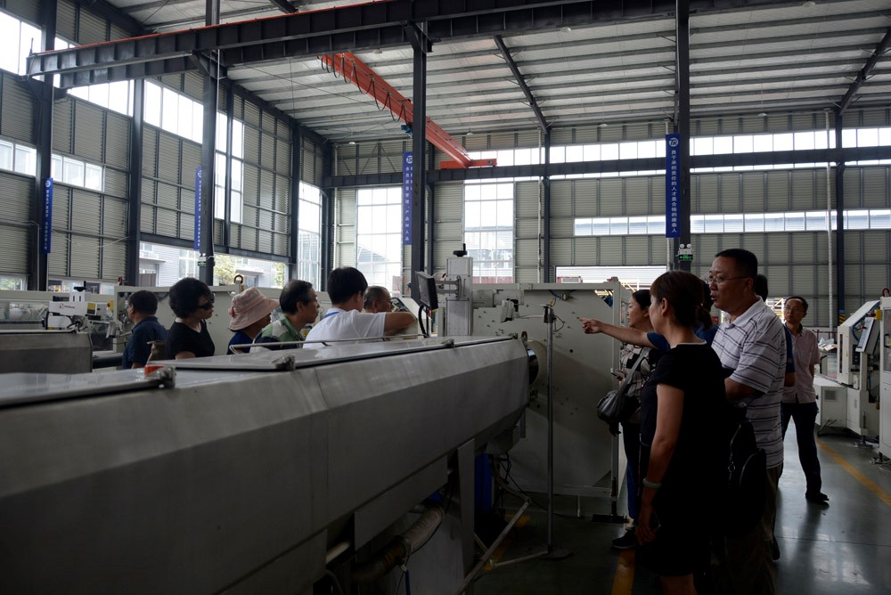 應(yīng)康泰集團(tuán)的盛情邀請(qǐng),6月30日下午,由總工程師、 副總工程師等設(shè)計(jì)院專家組成的20人考察團(tuán)蒞臨康泰考察、交流指導(dǎo)工作??堤┘瘓F(tuán)副總裁張文霖,銷售總監(jiān)何朝暉,技術(shù)總監(jiān)張雙全熱情歡迎各位領(lǐng)導(dǎo)、專家的蒞臨并陪同參觀康泰集團(tuán)線管車間、PVC管材車間、管件車間、聚烯烴車間和實(shí)驗(yàn)室等。
