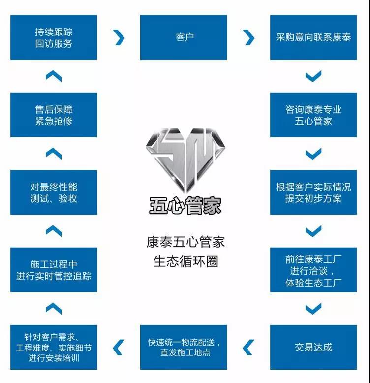 電工管道除安全質(zhì)量需要嚴格把關(guān)外,產(chǎn)品售后也是一大重點。良好的售后不僅能為安全增添一層保護膜,更能為家庭生活免去了安裝后的種種擔憂。因此,康泰塑膠為完善產(chǎn)品系統(tǒng)特意推出一站式服務(wù)“五心管家”,他們投入大量資源建立了一套健全完善的售后服務(wù)體系,不僅做到在產(chǎn)品質(zhì)量上嚴格篩選讓客戶放心外,在售后的回訪、服務(wù)中也以最大可能性避免安全隱患,讓客戶安心??堤漠a(chǎn)品的購買、實地安裝和售后都極具專業(yè)化的為用戶提供了全程的服務(wù)支持,他們的每一個步驟都以用戶為中心,為客戶爭取利益最大化。這樣的措施不但建立了與消費者之間溝通的橋梁,也增強了與用戶之間的信任。